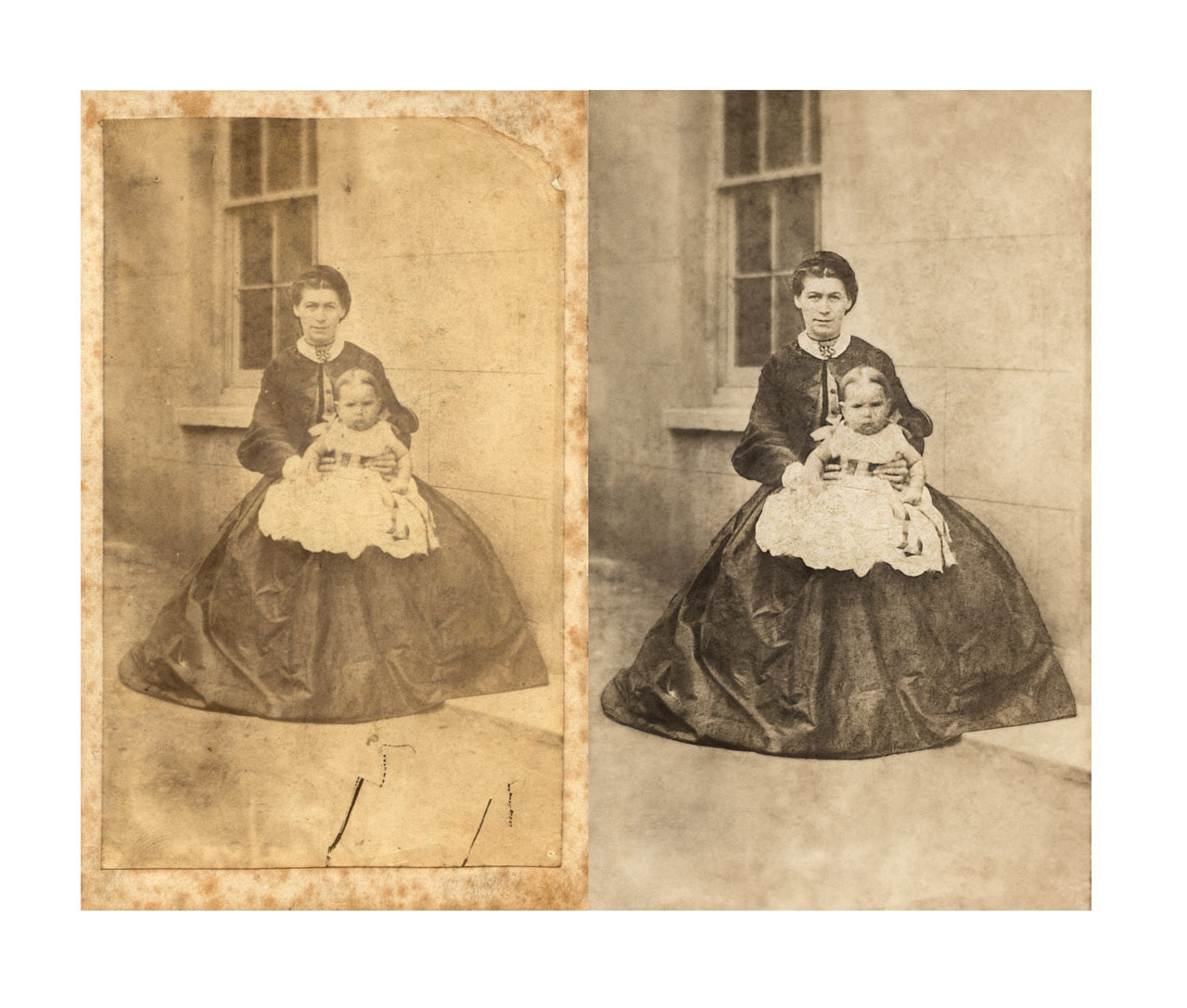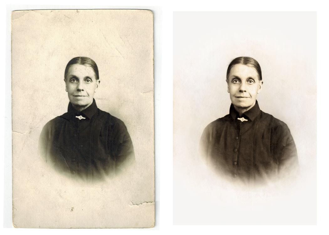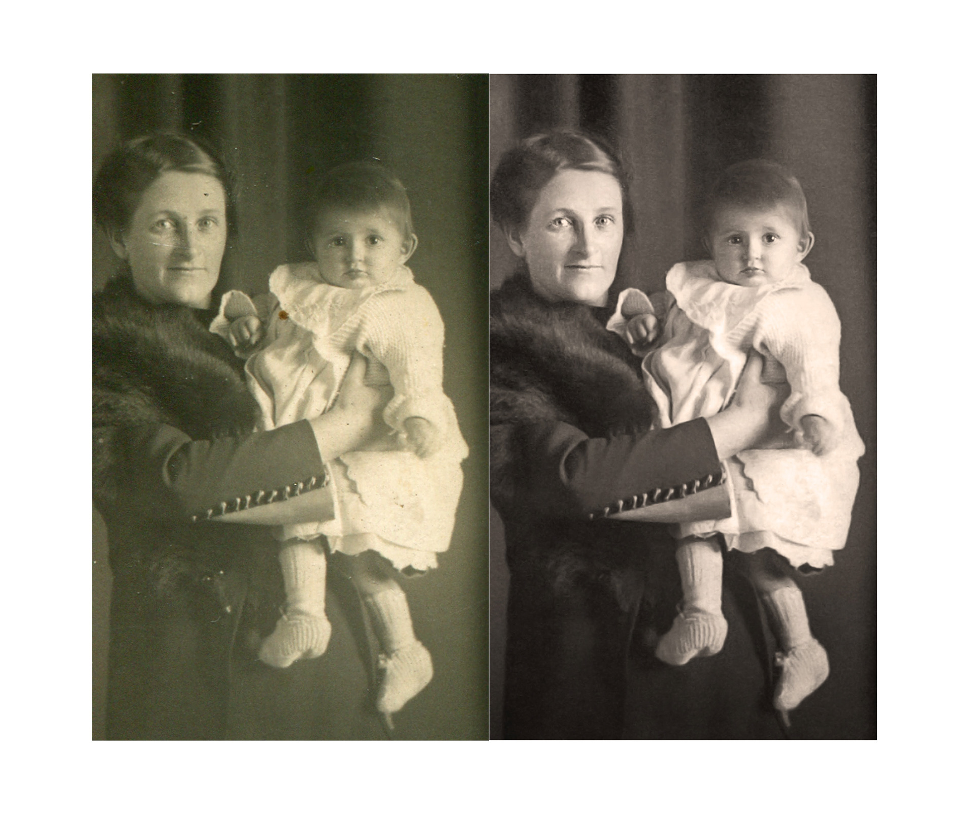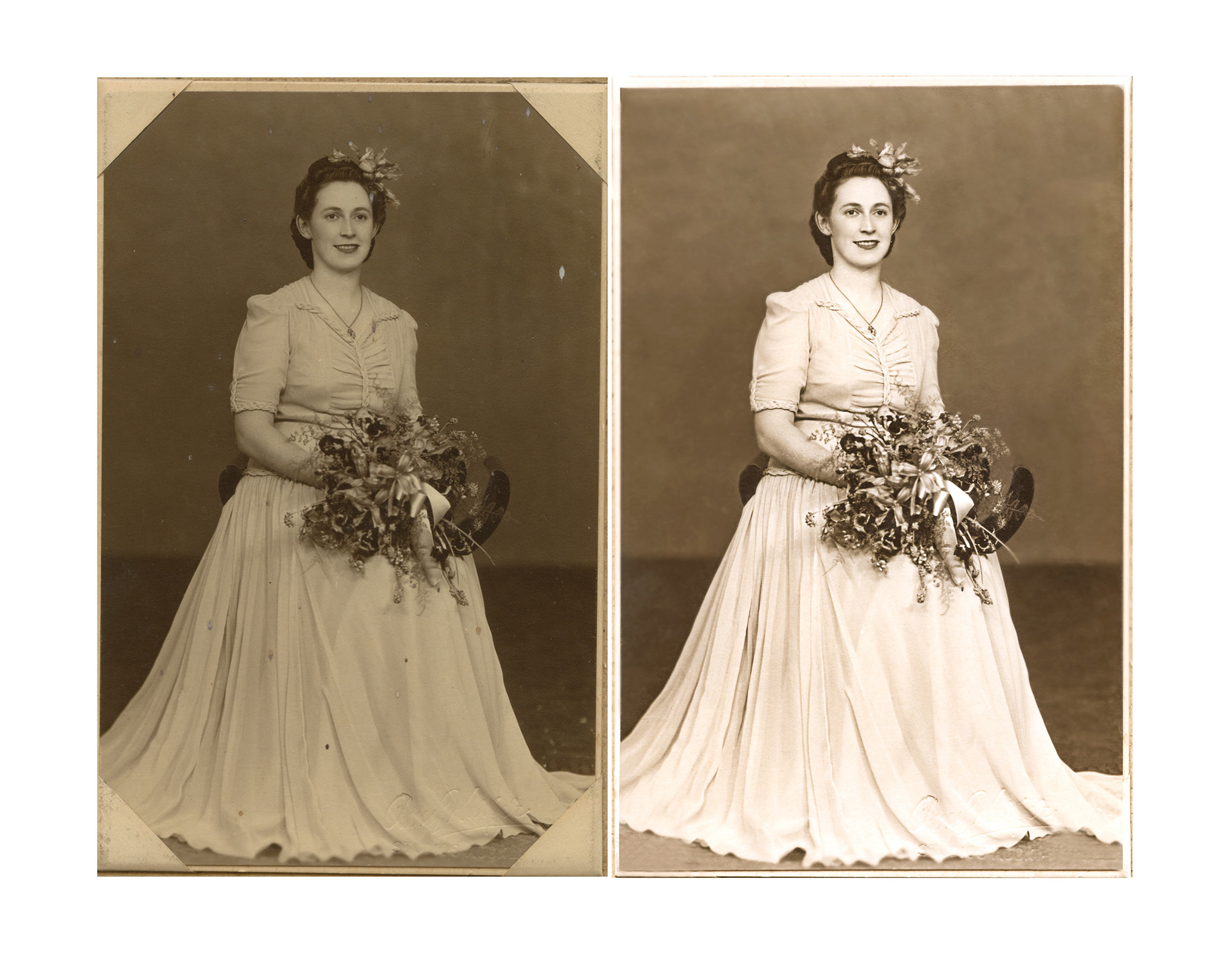 A selection of photo restoration s, before and after. I like to keep the original character of the photo by not removing all of the grain or original sepia tones. The goal is to bring out and preserve as much detail as possible.