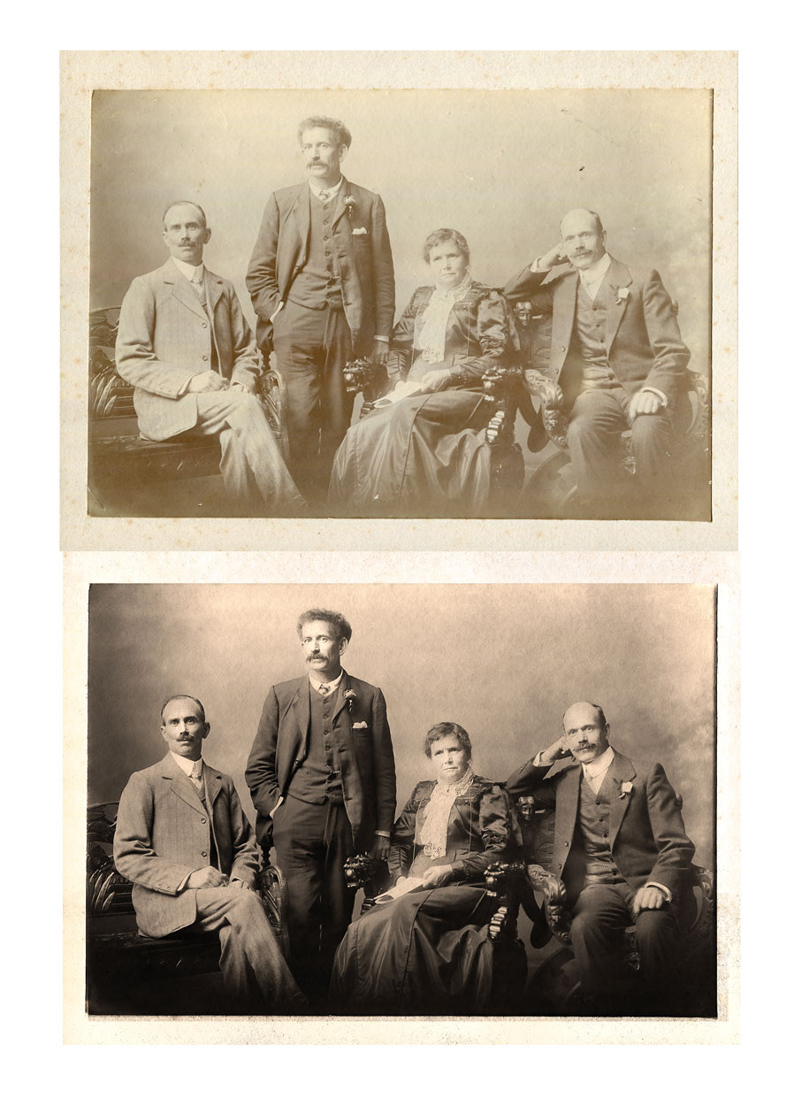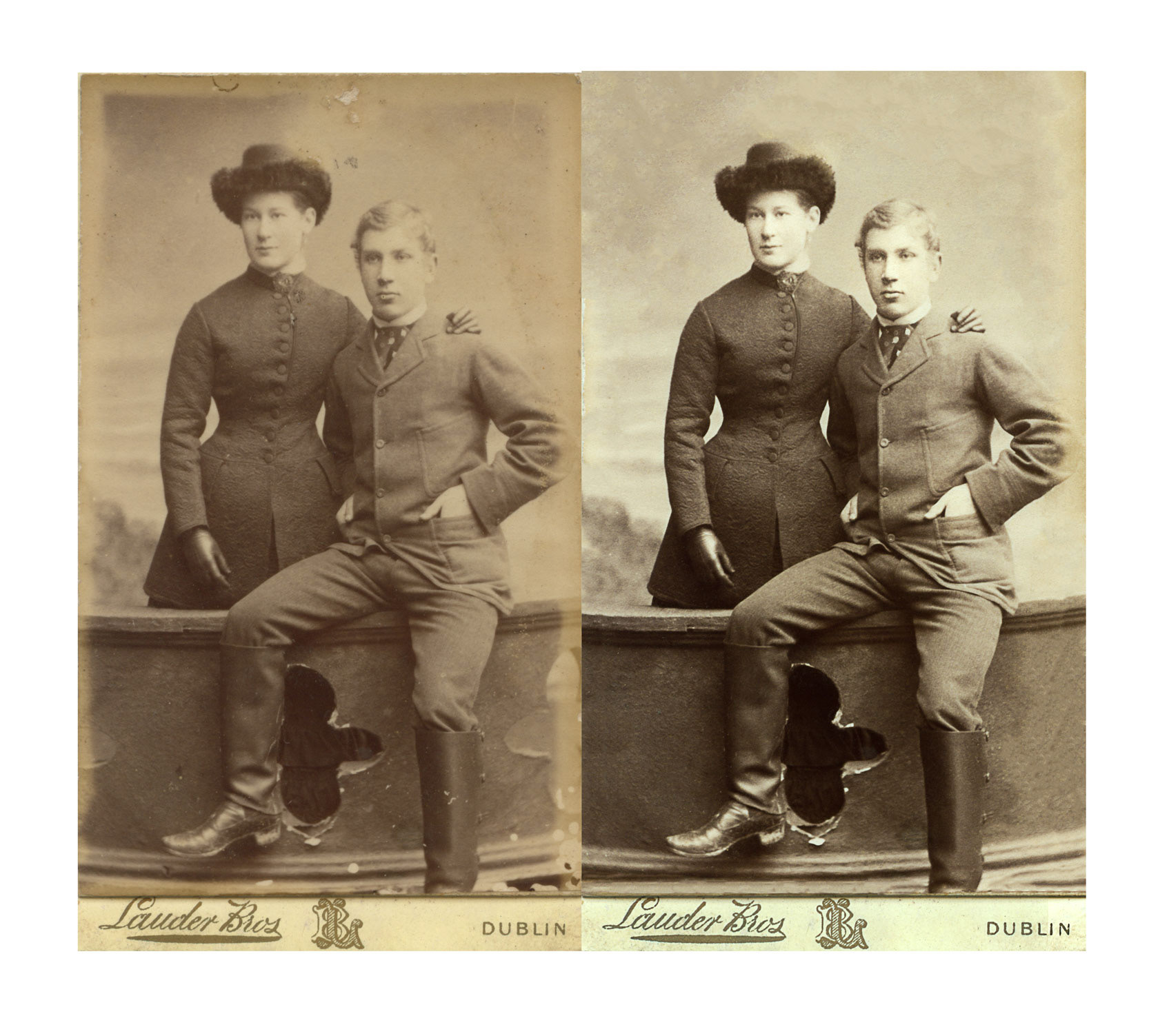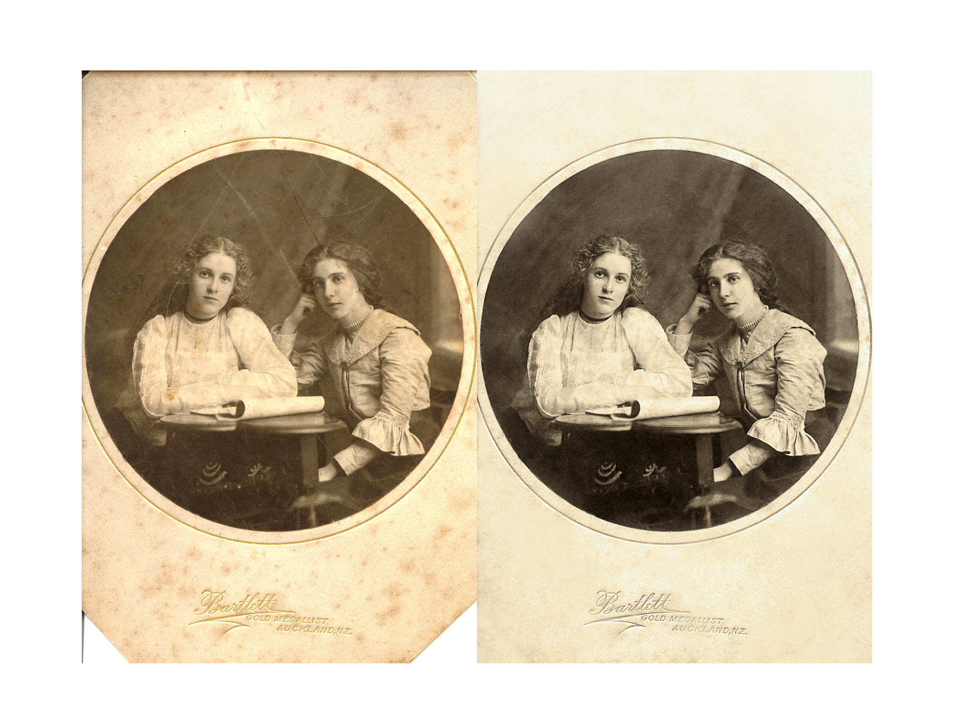 A selection of photo restoration s, before and after. I like to keep the original character of the photo by not removing all of the grain or original sepia tones. The goal is to bring out and preserve as much detail as possible.