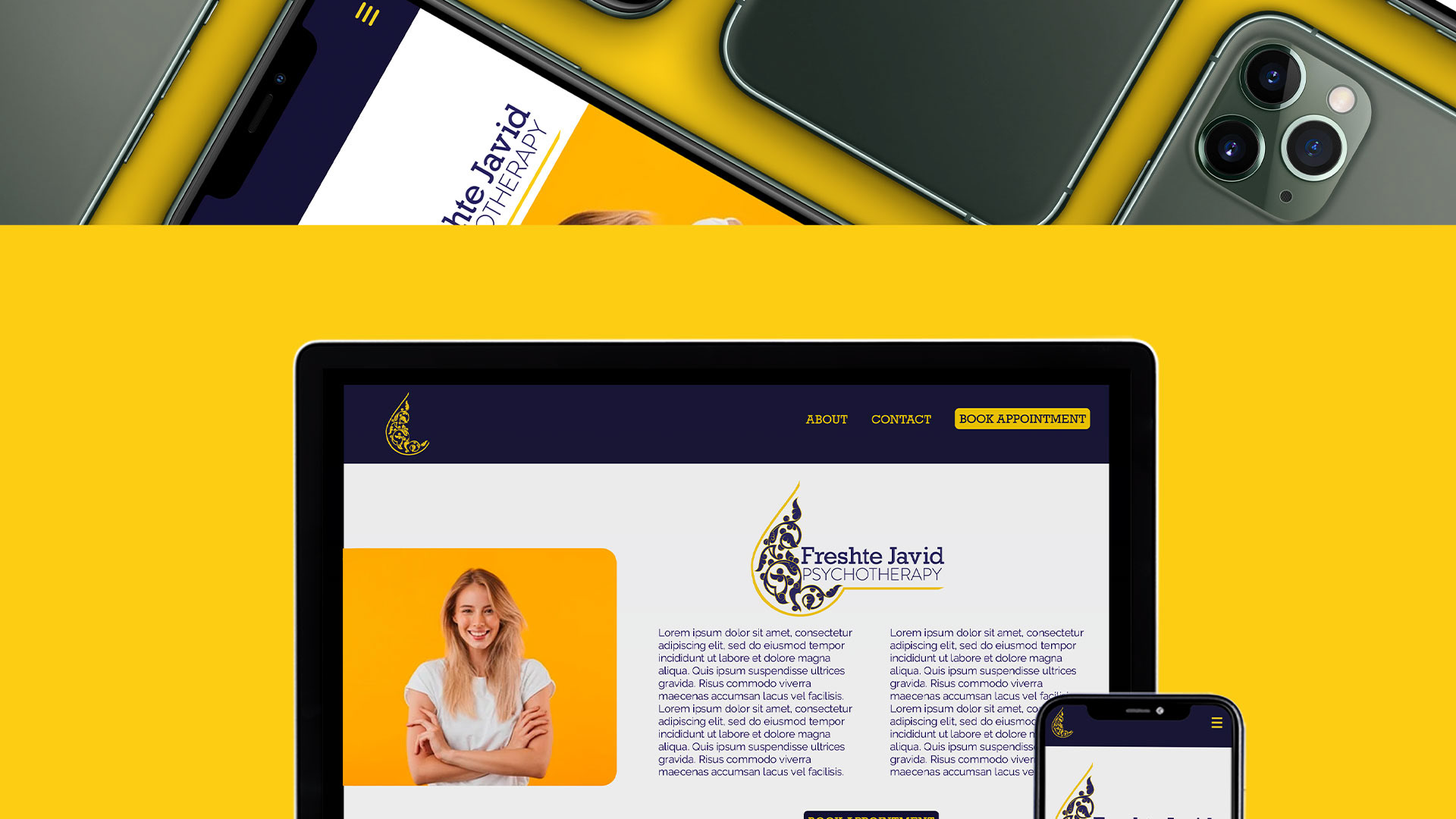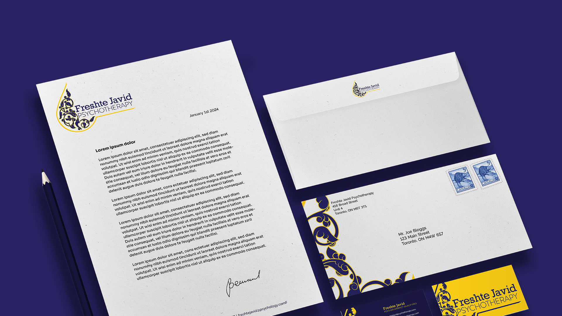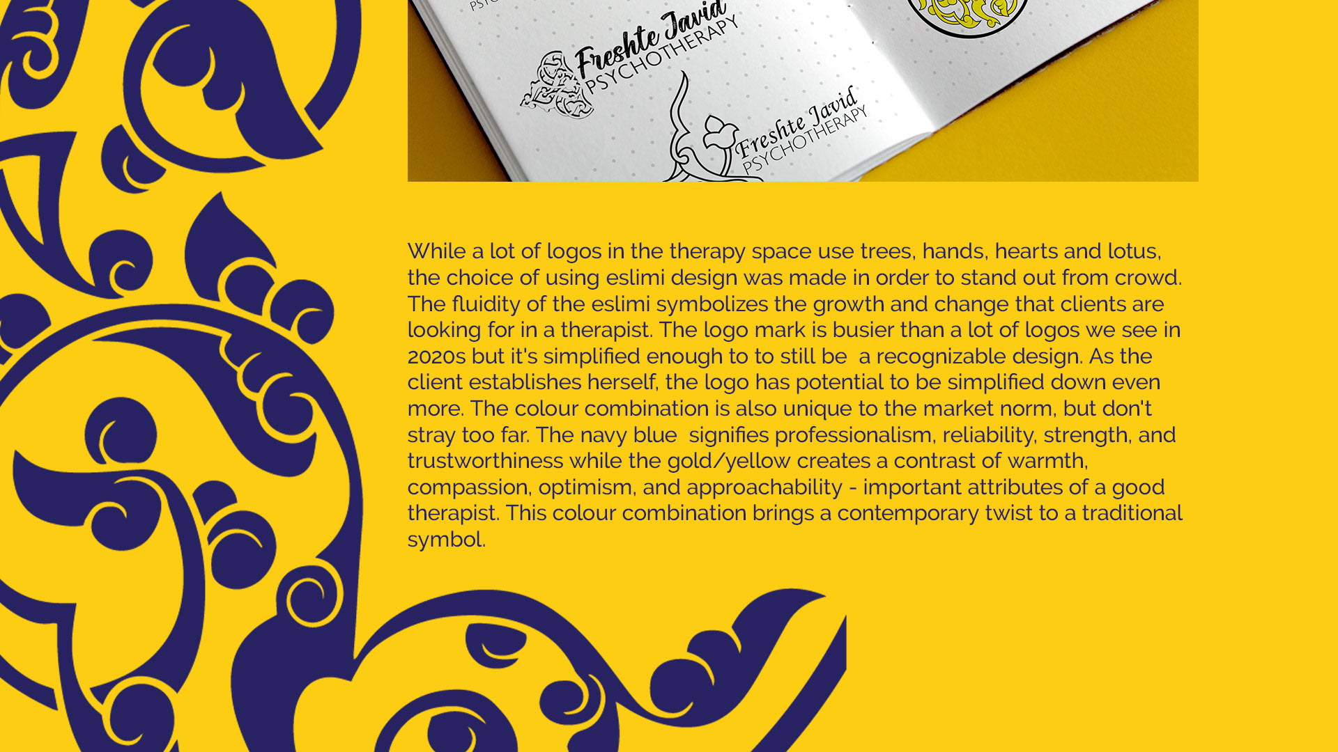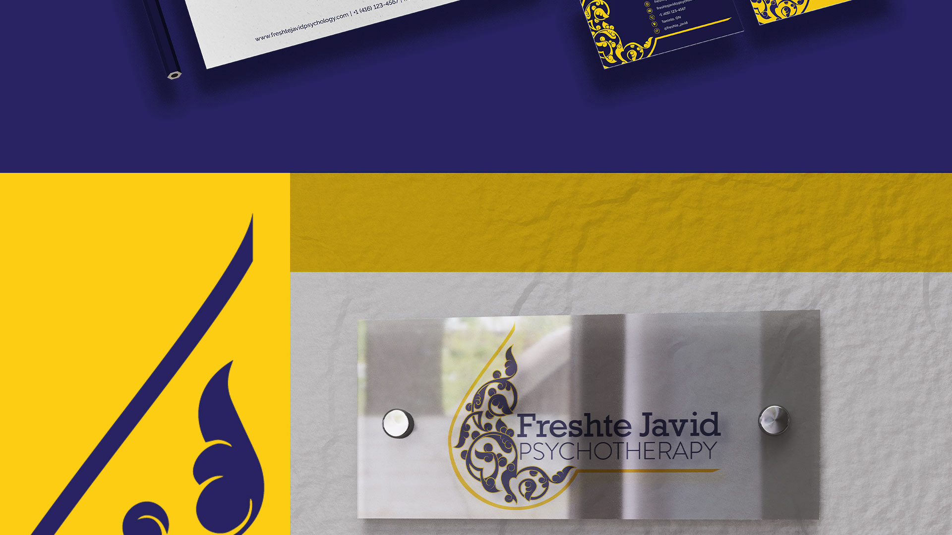 Logo design and brand design for a freelance psychotherapist mixing contemporary and traditional elements.